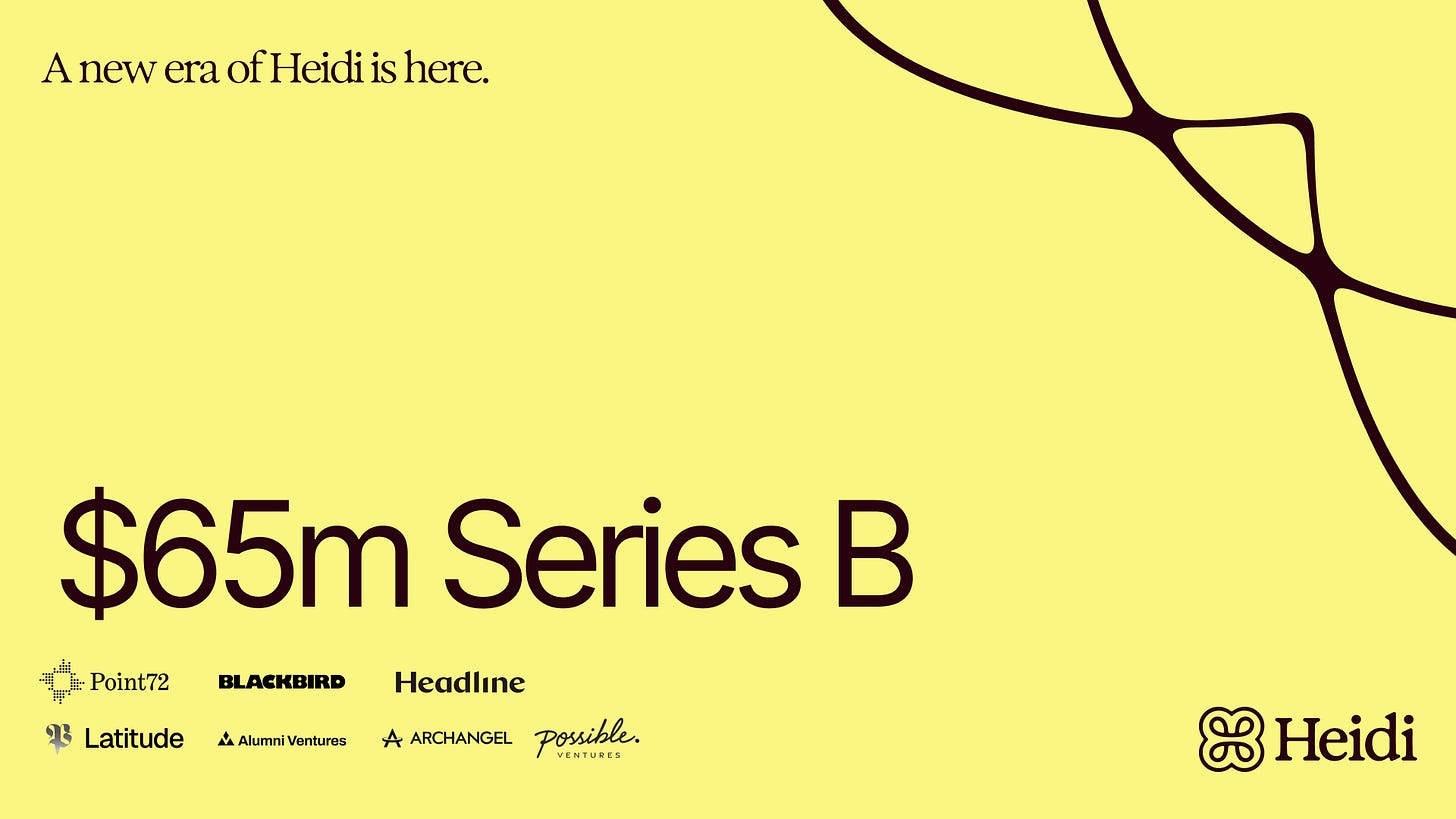 Raise: Heidi Health closes $65m Series B - I’ve been saying for a while in this newsletter that Health tech is the one of those sectors I am eyeing most closely and news like this reminds me why. Healthcare AI company Heidi has closed a $65m ($100m NZD) Series B funding round, led by Point72 Private Investments with participation from Blackbird, Headline, and Latitude, the growth fund of Phoenix Court.