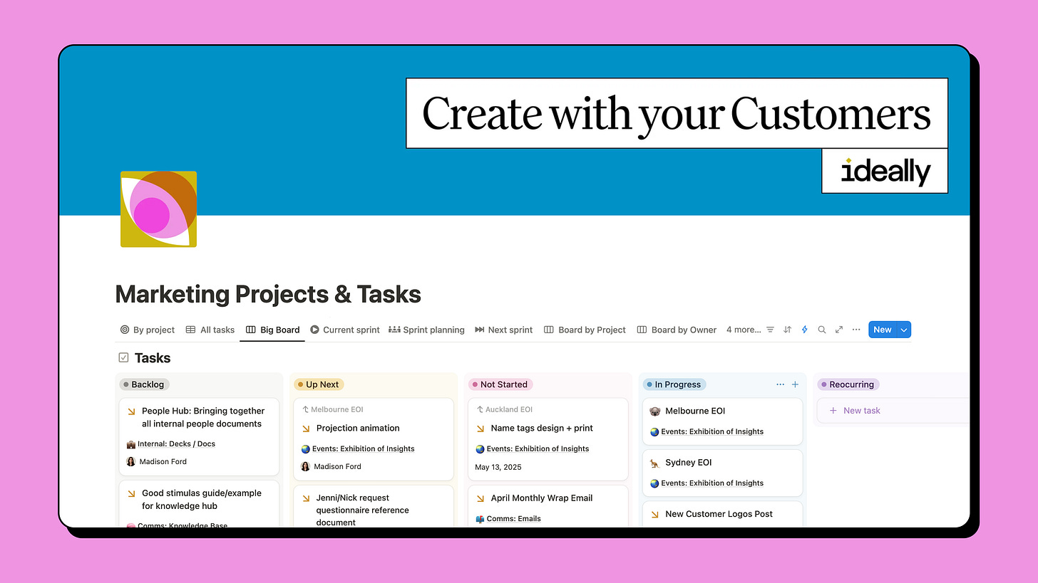 Ideally’s marketing team relies on Notion as their single source of truth for everything content-related. From the earliest spark of an idea to the final published campaign, Notion keeps every step visible, collaborative, and connected.